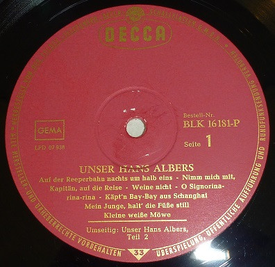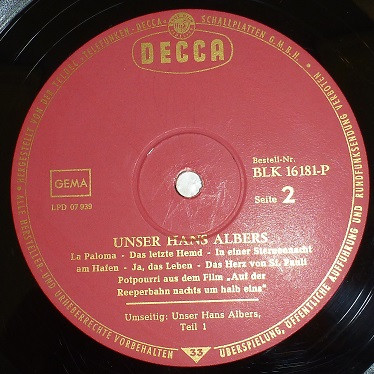 Hans Albers – Unser Hans Albers (LP, Comp)