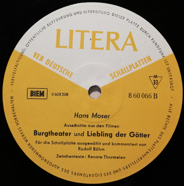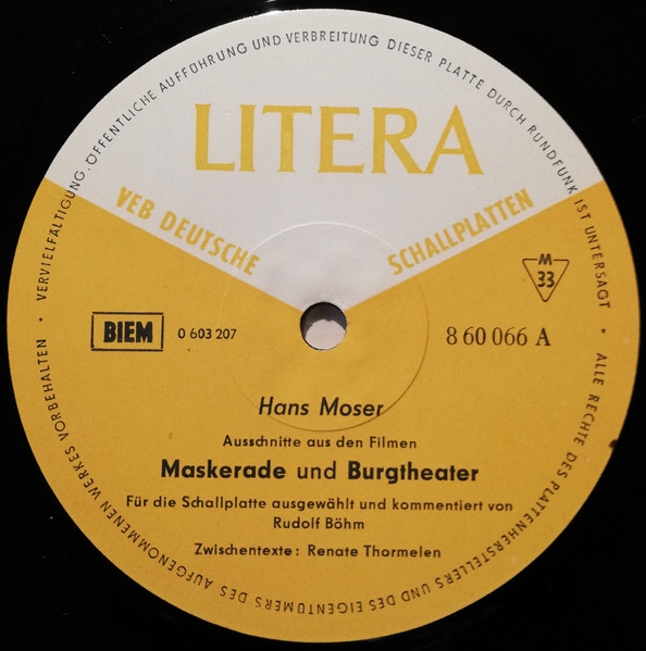 Hans Moser – Ausschnitte Aus Den Filmen Liebling Der Götter, Maskerade, Burgtheater (LP, Album, Mono)