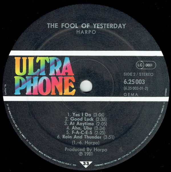 Harpo – The Fool Of Yesterday… (LP, Album)