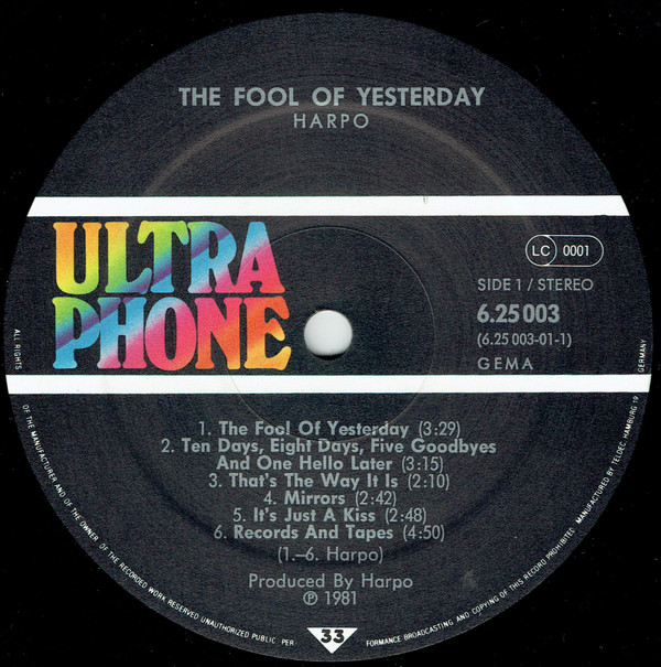 Harpo – The Fool Of Yesterday… (LP, Album)