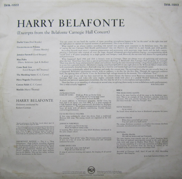 Harry Belafonte – Excerpts From The Belafonte Carnegie Hall Concert (LP, Album, Mono, RE)