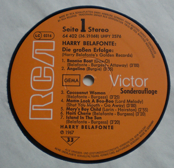 Harry Belafonte – Golden Records (LP, Comp, Club, RE)