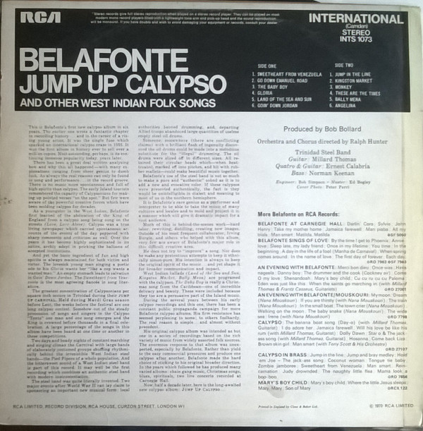 Harry Belafonte – Jump Up Calypso (LP, Album, RE)