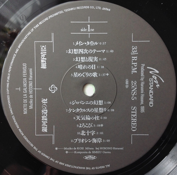 Haruomi Hosono = Haruomi Hosono – Ñokto De La Galaksia Fervojo = 銀河鉄道の夜 = Night On The Galactic Railroad (LP, Album)