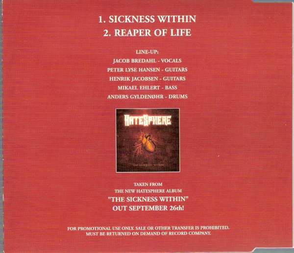 HateSphere – Sickness Within / Reaper Of Life (CD, Single, Promo)