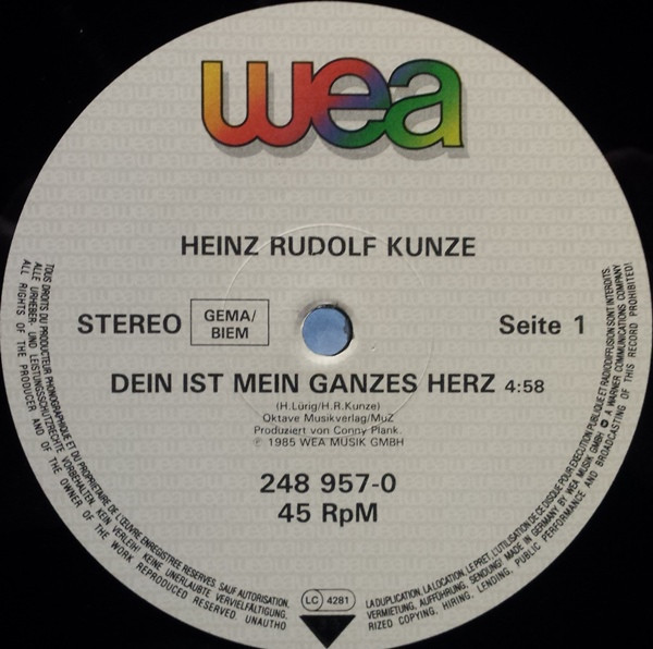 Heinz Rudolf Kunze – Dein Ist Mein Ganzes Herz (12″, Maxi)