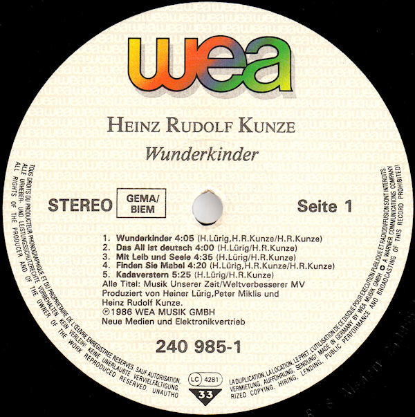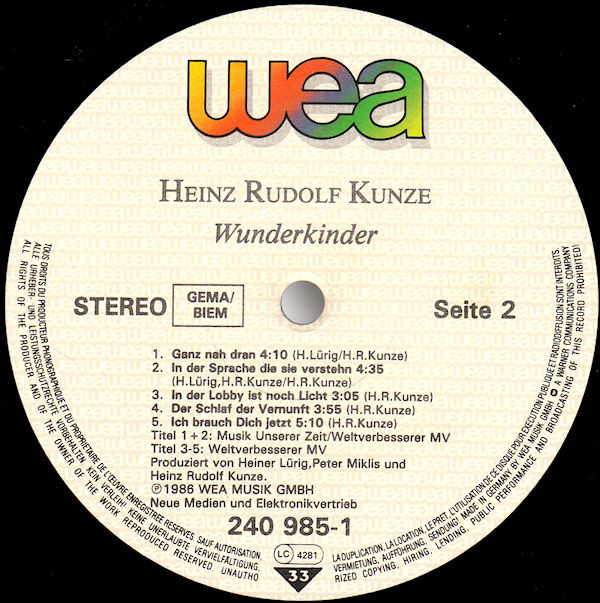 Heinz Rudolf Kunze – Wunderkinder (LP, Album, RSA)
