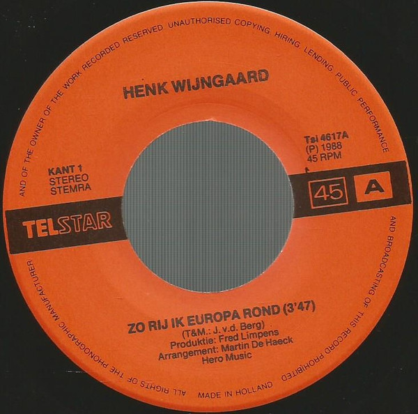 Henk Wijngaard – Zo Rij Ik Europa Rond (7″, Single)
