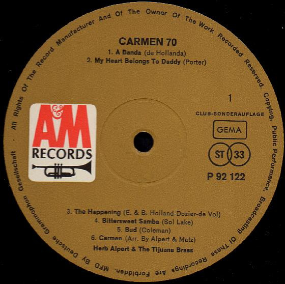 Herb Alpert’s Tijuana Brass* – Carmen 70 (LP, Comp, Club)