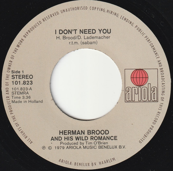 Herman Brood & His Wild Romance – I Don’t Need You (7″, Single)