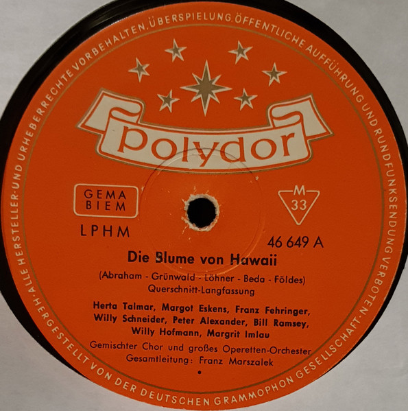 Herta Talmar, Margot Eskens, Bibi Johns, Rita Bartos, Margrit Imlau, Franz Fehringer, Sándor Kónya, Peter Alexander, Willy Schneider, Bill Ramsey, Willy Hofmann – Die Blume Von Hawaii / Viktoria Und Ihr Husar (LP, Album, Mono)