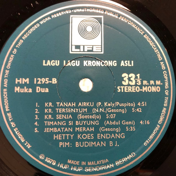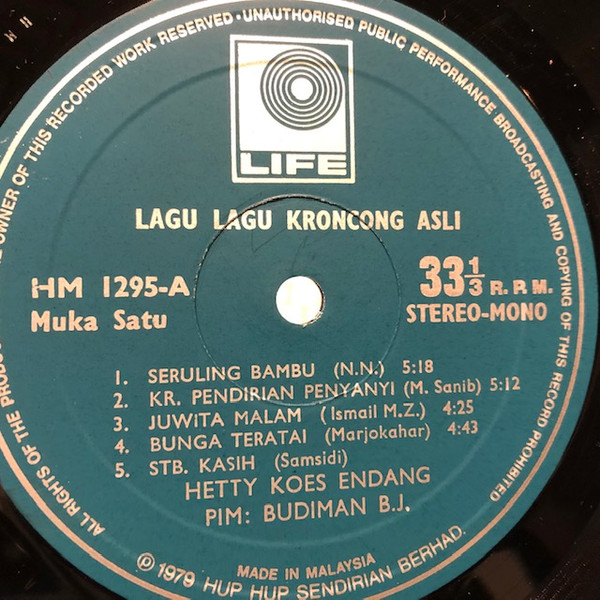 Hetty Koes Endang – Lagu Lagu Keroncong Asli (LP, Album)