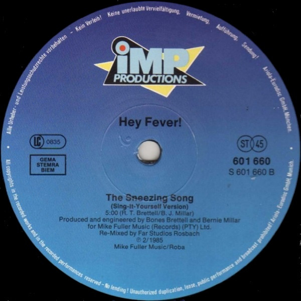Hey Fever! – The Sneezing Song (12″, Maxi)