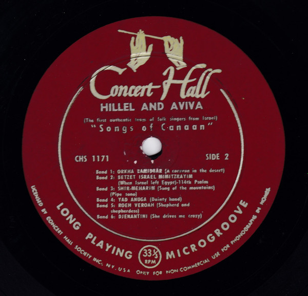 Hillel And Aviva – Songs Of Canaan (10″, Album)