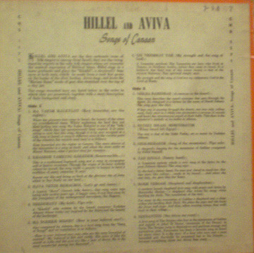 Hillel And Aviva – Songs Of Canaan (10″, Album)