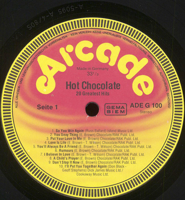 Hot Chocolate – 20 Greatest Hits (LP, Comp)