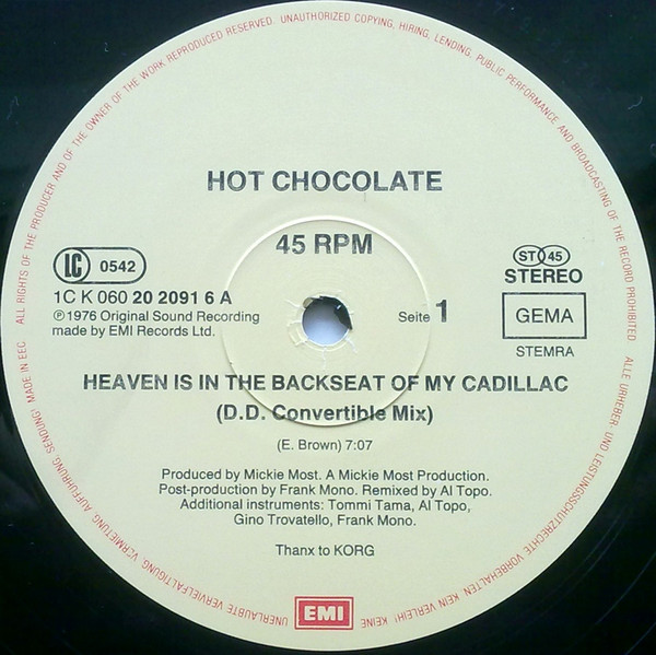 Hot Chocolate – Heaven Is In The Backseat Of My Cadillac (12″, Maxi)