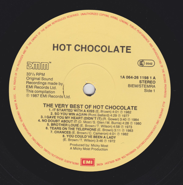 Hot Chocolate – The Very Best Of Hot Chocolate (LP, Comp, DMM)