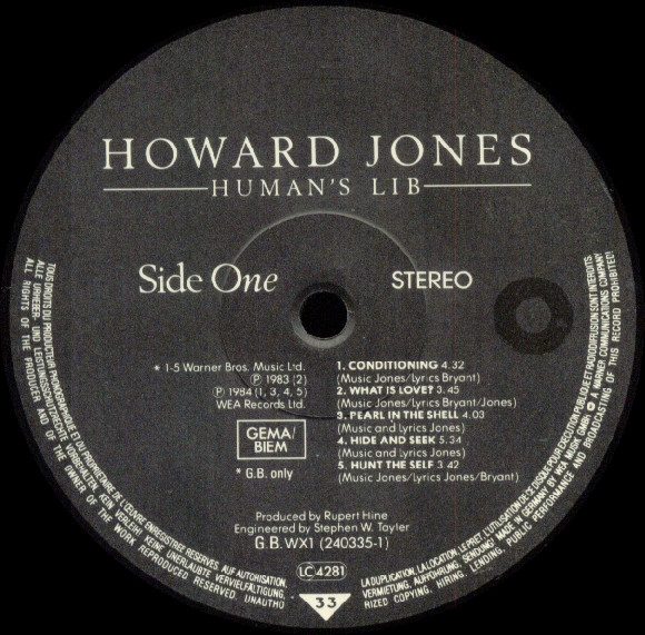 Howard Jones – Human’s Lib (LP, Album, Bla)