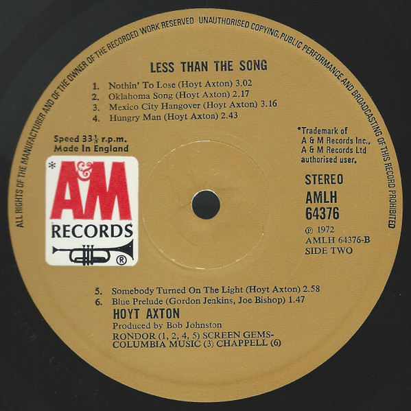 Hoyt Axton – Less Than The Song (LP, Album)