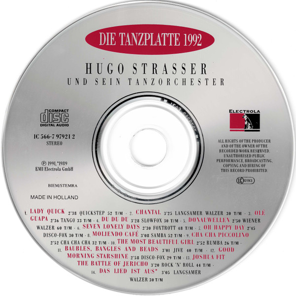 Hugo Strasser Und Sein Tanzorchester – Die Tanzplatte 1992 (CD, Comp)