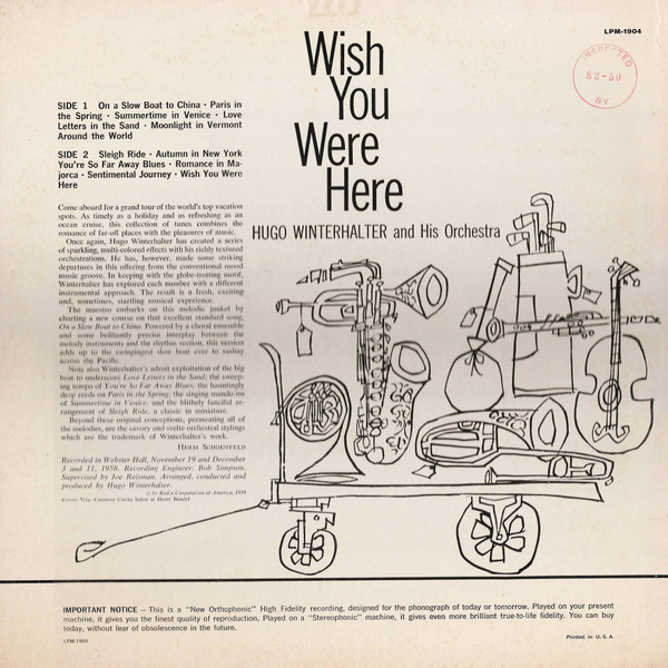 Hugo Winterhalter And His Orchestra* – Wish You Were Here (LP, Album, Mono, Ind)