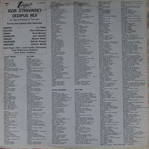 Igor Stravinsky / The Czech Philharmonic Orchestra, Karel Ančerl – Oedipus Rex (LP, Album, RE)