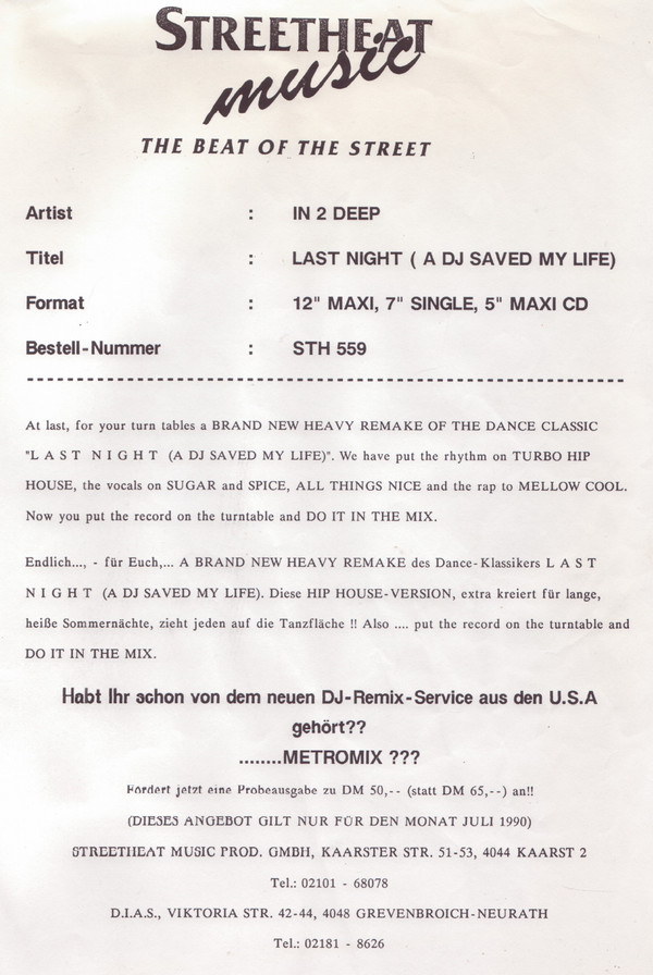 In To Deep – Last Night (A DJ Saved My Life) (12″)