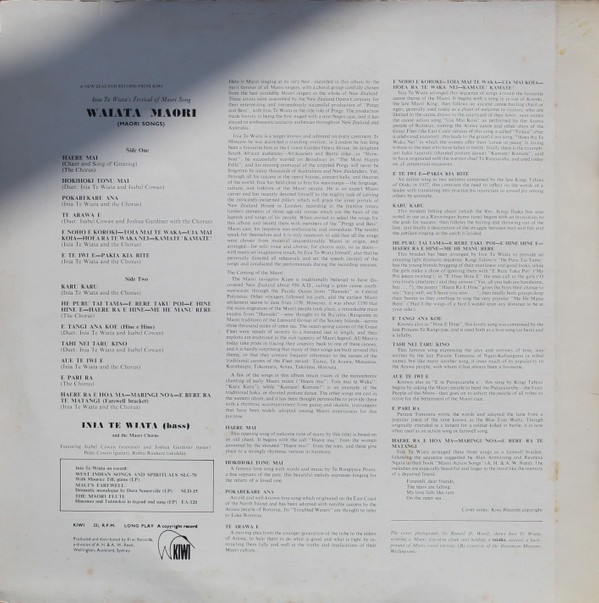 Inia Te Wiata And The Maori Chorus Of The New Zealand Opera Company – Inia Wiata’s Festival Of Maori Song: Waiata Maori (LP)