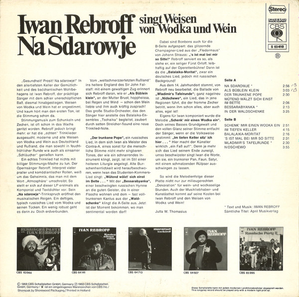 Ivan Rebroff – Na Sdarowje (Ivan Rebroff Singt Weisen Von Wodka Und Wein) (LP, Album)