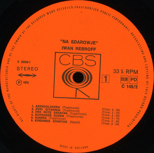 Ivan Rebroff – Na Sdarowje (LP, Album, Club)