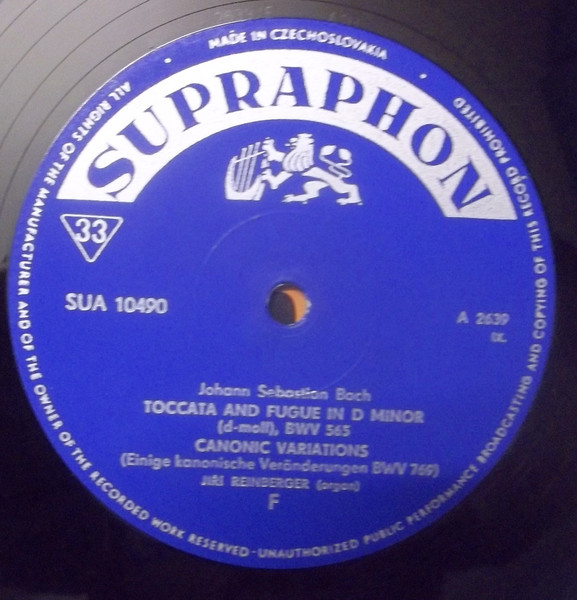 J S Bach*, Jiří Reinberger – Organ Music (LP, Mono)