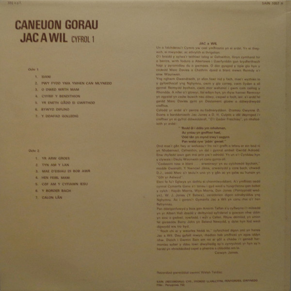Jac A Wil – Caneuon Gorau Jac A Wil : Cyfrol 1 (LP, Mono)