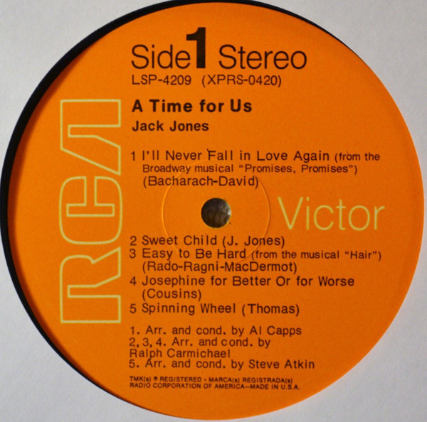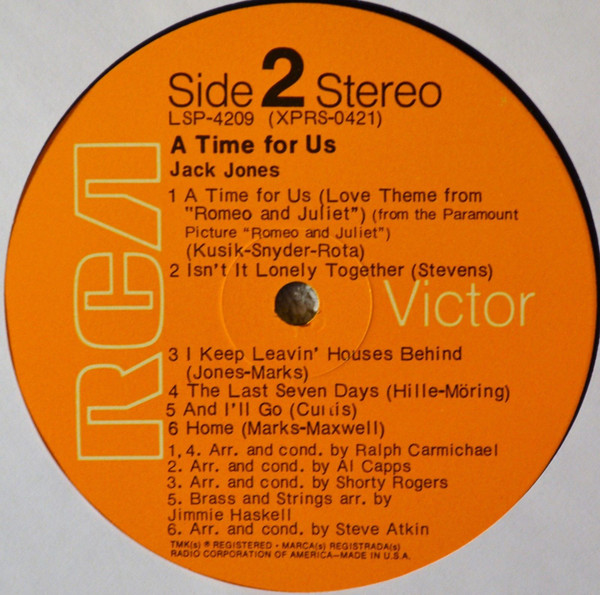 Jack Jones – A Time For Us (LP, Album, Hol)
