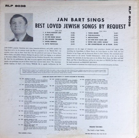 Jan Bart – Best Loved Jewish Songs (LP)