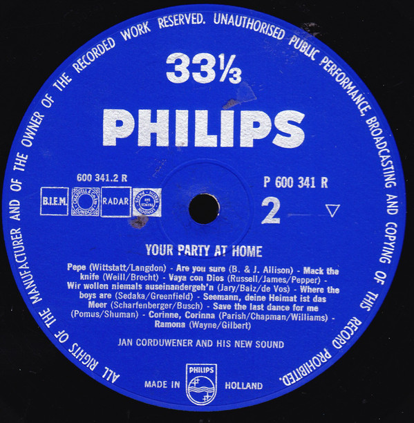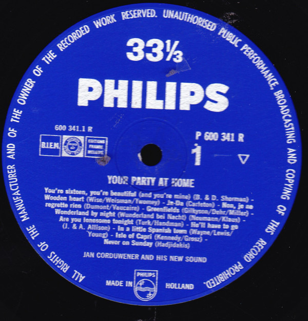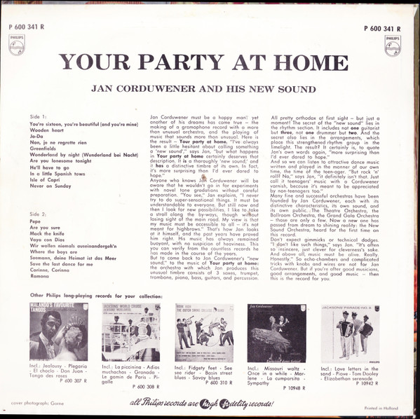 Jan Corduwener And His New Sound – Your Party At Home (10″, Mono)