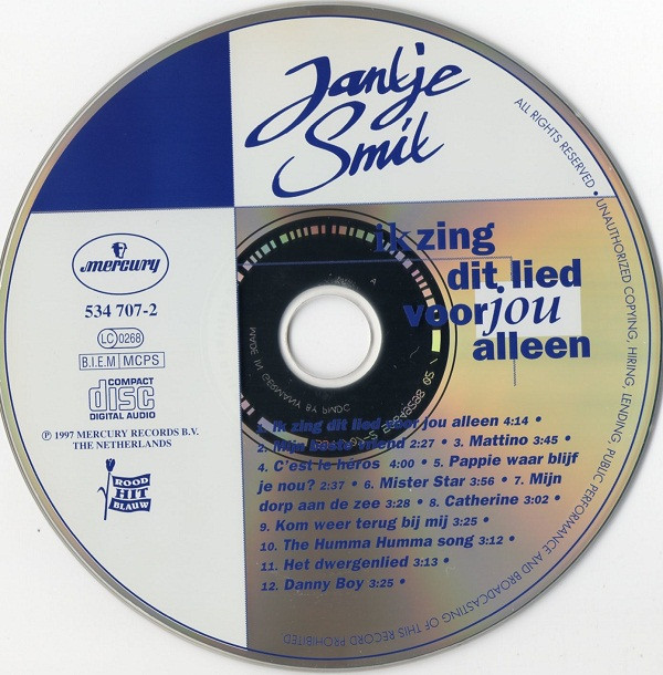 Jan Smit – Ik Zing Dit Lied Voor Jou Alleen (CD, Album, RE, PMD)