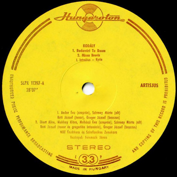 János Ferencsik, Magyar Rádió És Televízió Énekkara And Magyar Rádió És Televízió Szimfónikus Zenekara – Zoltán Kodály – Te Deum Of Buda Castle / Missa Brevis (LP)