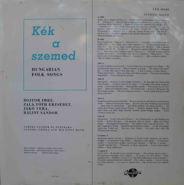 Jaroka-Gipsy-Orchester – Kék A Szemed – Hungarian Folk Songs (LP, Comp)