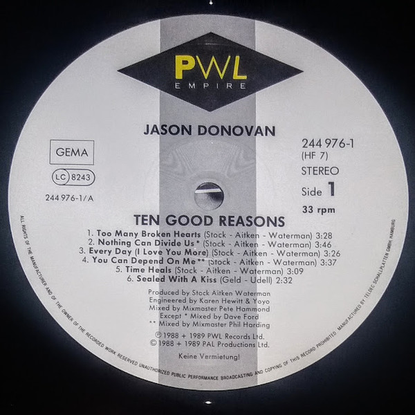 Jason Donovan – Ten Good Reasons (LP, Album)