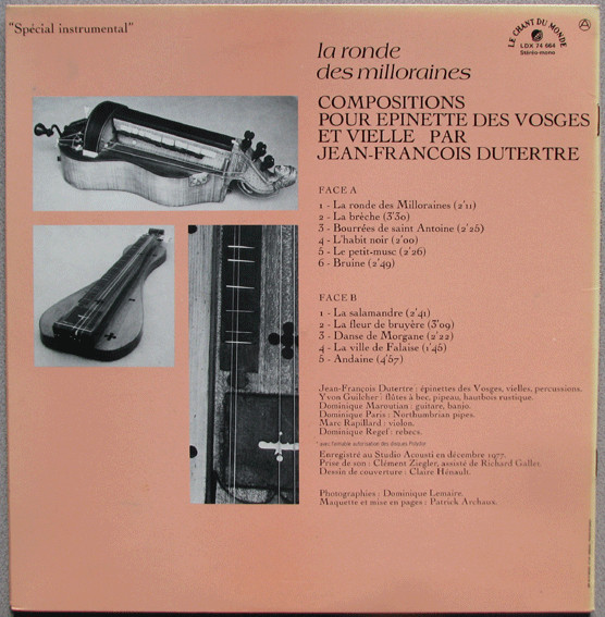 Jean-François Dutertre – La Ronde Des Milloraines – Compositions Pour Épinette Des Vosges Et Vielle (LP, Album)