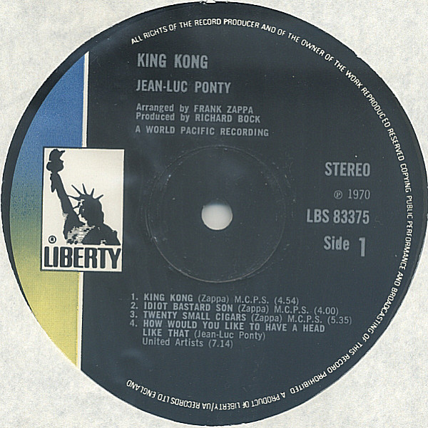Jean-Luc Ponty – King Kong (Jean-Luc Ponty Plays The Music Of Frank Zappa) (LP, Album)