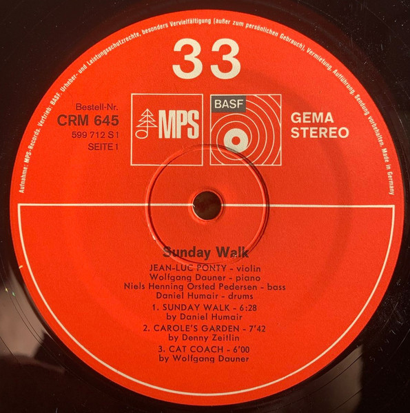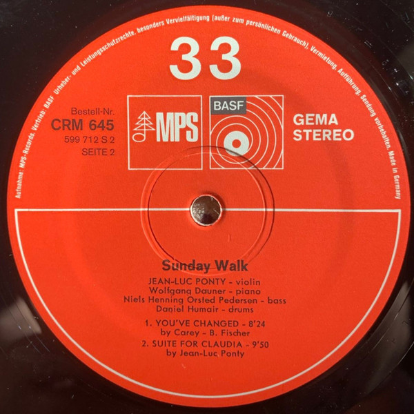 Jean-Luc Ponty – Sunday Walk (LP, Album, RE, Gat)