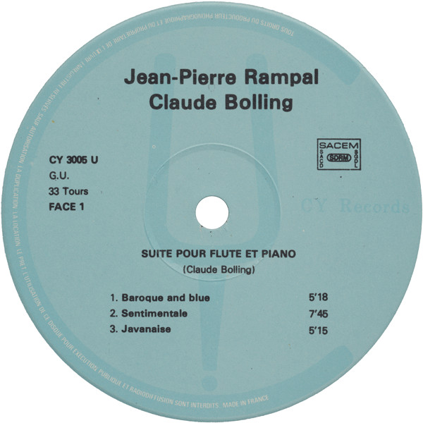 Jean-Pierre Rampal, Claude Bolling – Suite Pour Flûte Et Piano (LP, Album)