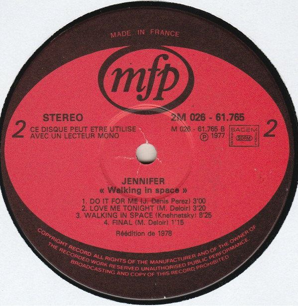 Jennifer (6) – Walking In Space (Do It For Me…) (LP, RE)