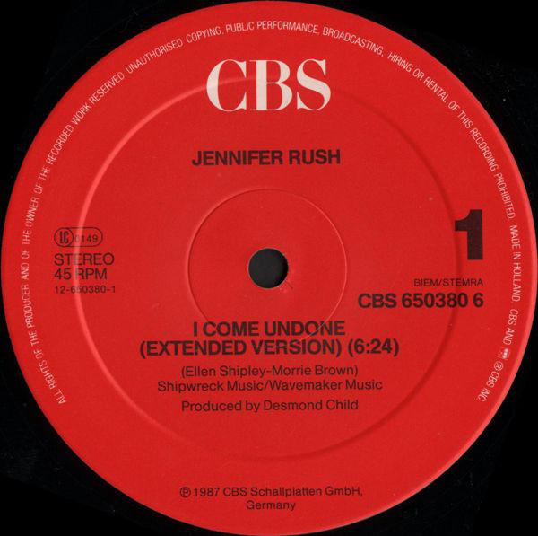 Jennifer Rush – I Come Undone (12″, Maxi)