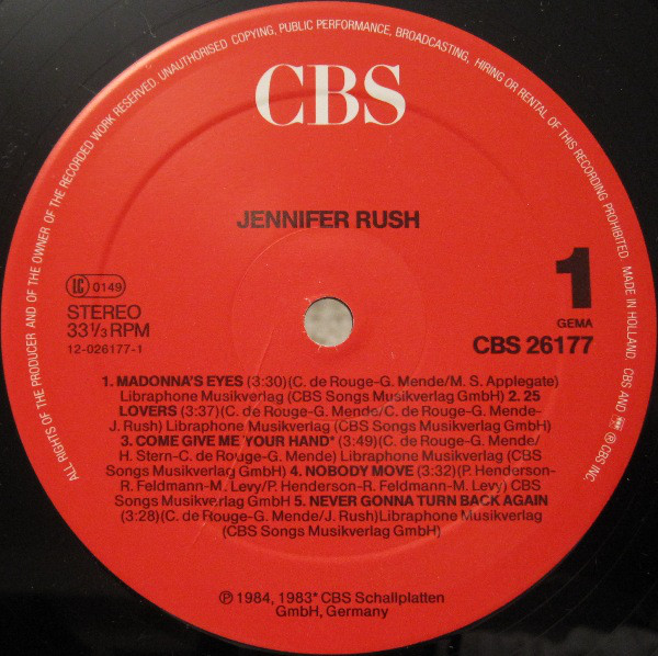 Jennifer Rush – Jennifer Rush (LP, Album, RP)
