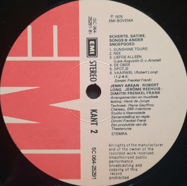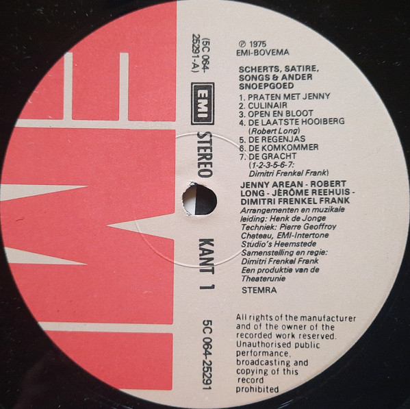 Jenny Arean, Robert Long, Jérôme Reehuis En Dimitri Frenkel Frank – Scherts, Satire, Songs & Ander Snoepgoed (LP, Album)