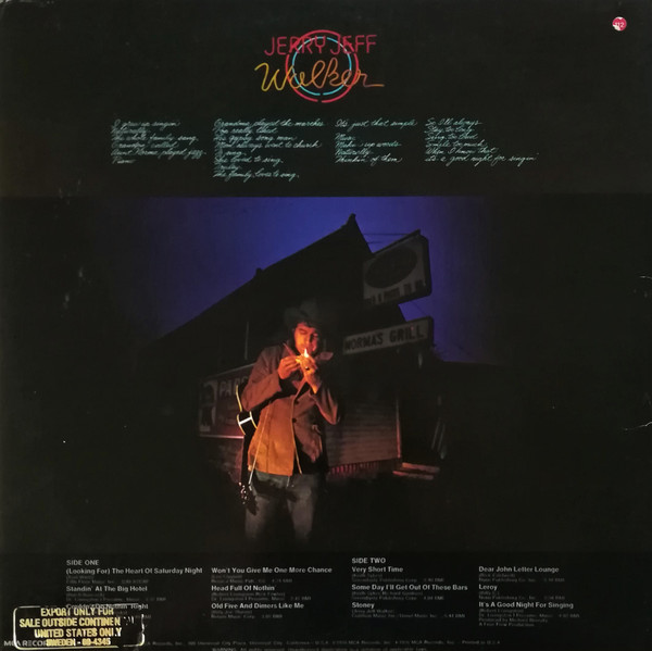 Jerry Jeff Walker – It’s A Good Night For Singin’ (LP, Album, RE, Glo)