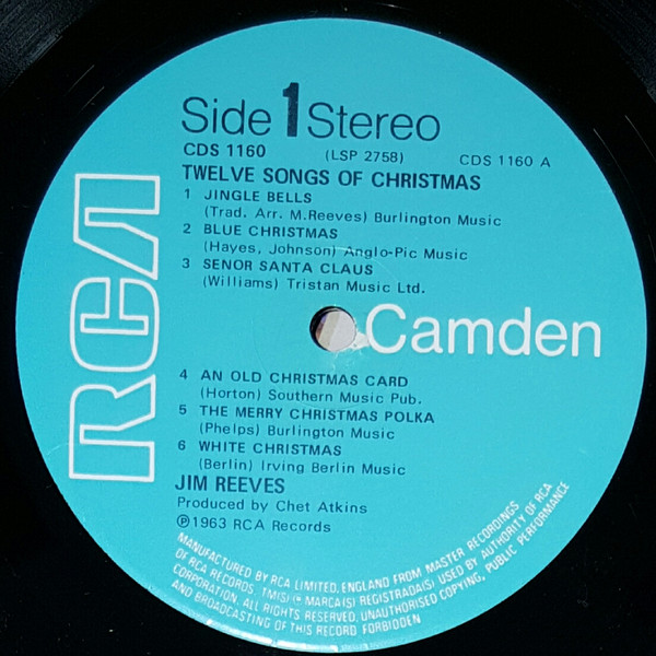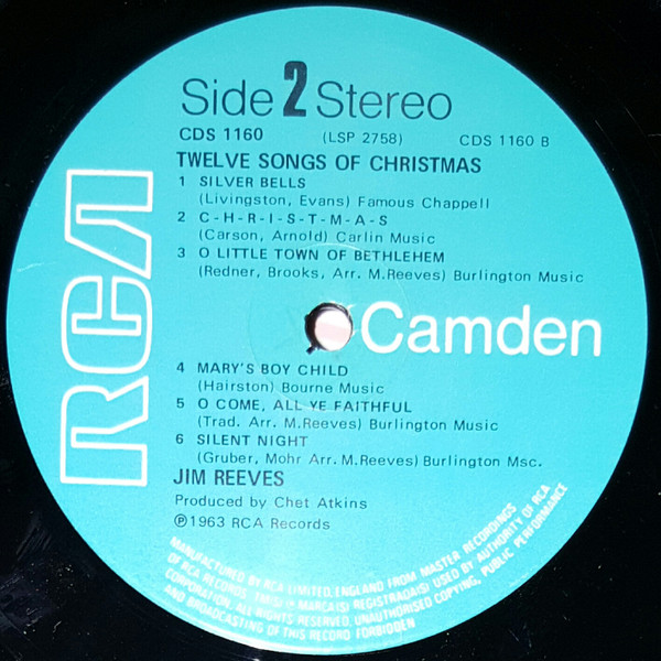 Jim Reeves – 12 Songs Of Christmas (LP, Album, RE, RCA)
